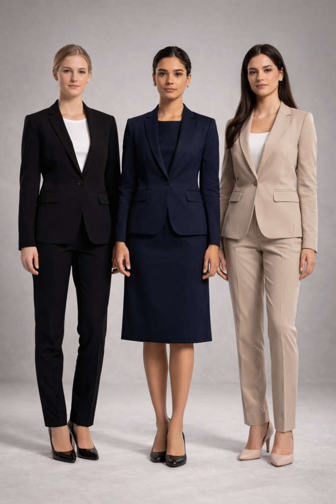 Traje formal con falda o pantalon.